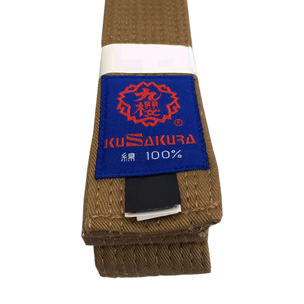 Descrição Especificação Itens inclusos Características A faixa marrom representa a cor da solidificação. É a faixa usada por praticantes que já possuem um conhecimento técnico mais a frente. Ela representa a terra fértil, que simboliza a habilidade do praticante em cultivar sua técnica e conhecimento no judô. Núcleo: 100% algodão Camada externa: 100% algodão Largura: 4,2 cm Costura: 10 linhas de costura Não possui selo IJF e é fabricada na China sob rigoroso processos de inspeção da KuSakura Japão 1 Faixa de Judo KuSakura Clássica Marrom País de Fabricação: China (Supervisão da KuSakura Japão)
